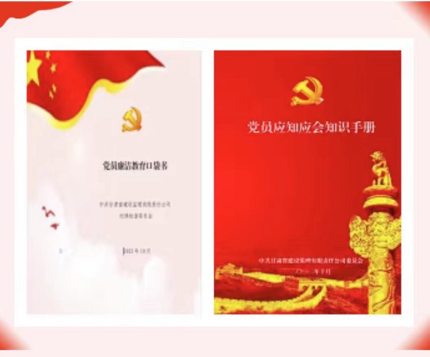 活動(dòng)中,建設(shè)監(jiān)理公司黨委還為黨員精心制作了《黨員廉潔教育口袋書(shū)》及《黨員應(yīng)知應(yīng)會(huì)知識(shí)手冊(cè)》,篩選出黨紀(jì)黨規(guī)、黨建常識(shí)、名言警句、家風(fēng)家教、廉潔從業(yè)等各方面的常用知識(shí),方便黨員學(xué)習(xí)使用。此次系列黨建活動(dòng)不但拓展了黨員干部職工的學(xué)習(xí)途徑,豐富了黨建宣傳形式,更有助于進(jìn)一步提升黨員的政治素質(zhì)和對(duì)黨建工作的認(rèn)知,凝聚廉政廉潔、風(fēng)清氣正的思想共識(shí)。