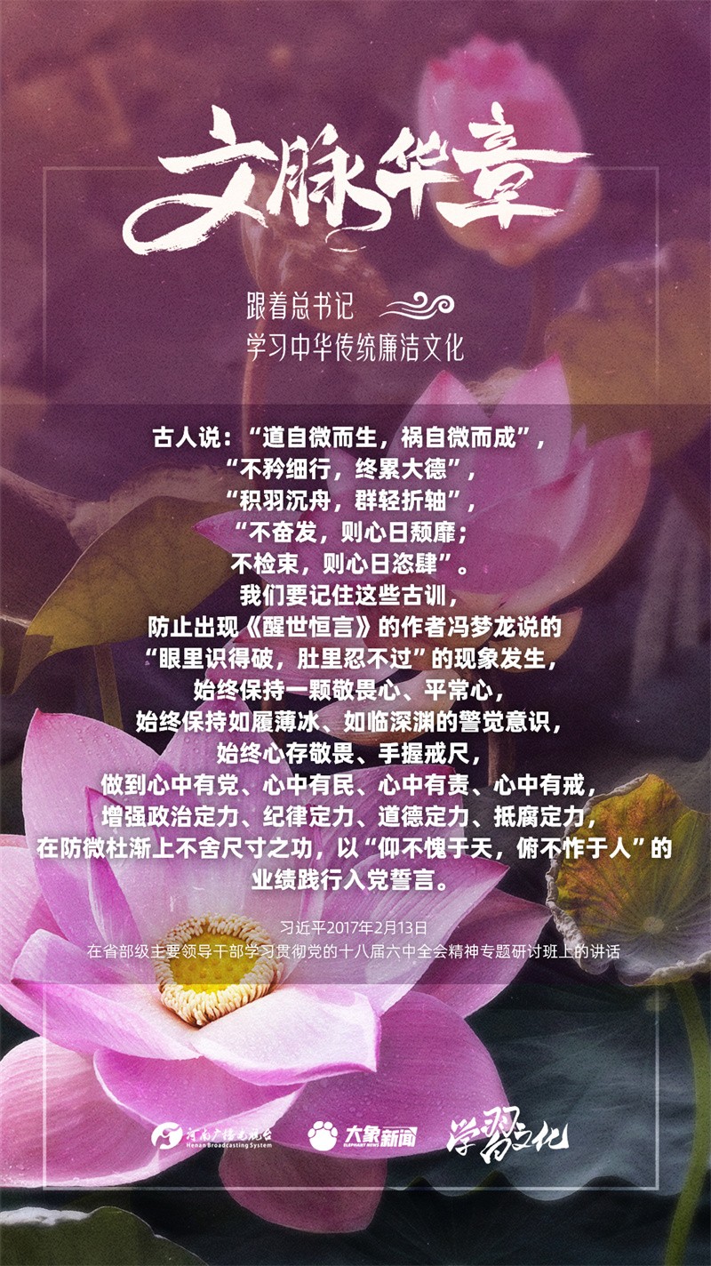 中華優(yōu)秀傳統(tǒng)文化蘊(yùn)含著豐富的廉潔文化,習(xí)近平總書記曾指出:沒有中華優(yōu)秀傳統(tǒng)文化、革命文化、社會(huì)主義先進(jìn)文化的底蘊(yùn)和滋養(yǎng),信仰信念就難以深沉而執(zhí)著??倳洺3R?jīng)據(jù)典,教育引導(dǎo)廣大黨員干部正心修身,涵養(yǎng)文化,守住為政之本。讓我們一起跟著總書記學(xué)習(xí)中華傳統(tǒng)廉潔文化。今天推出第三期。