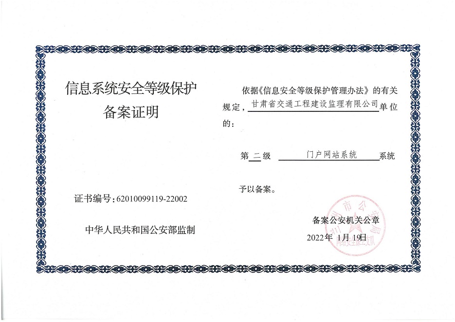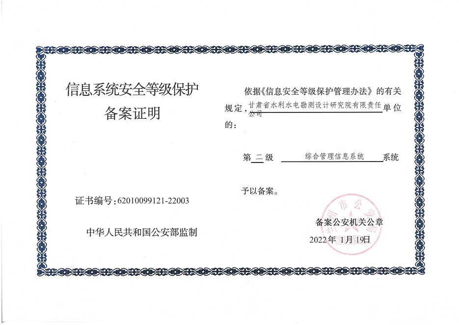 自工作開展以來,相關(guān)子公司積極貫徹落實(shí)集團(tuán)公司工作舉措,集團(tuán)本部、建筑設(shè)計(jì)院、水電設(shè)計(jì)院、土木工程院、招標(biāo)咨詢集團(tuán)、交通監(jiān)理公司合計(jì)16個信息系統(tǒng)已順利完成信息系統(tǒng)安全等級保護(hù)2.0測評備案工作,并獲得監(jiān)管部門頒發(fā)的《信息系統(tǒng)安全等級保護(hù)備案證明》。通過此次等級保護(hù)2.0測評工作,集團(tuán)公司網(wǎng)絡(luò)和重要的信息數(shù)據(jù)系統(tǒng)的安全防護(hù)和保障能力得到進(jìn)一步提升,為推動集團(tuán)公司數(shù)字化轉(zhuǎn)型工作打下堅(jiān)實(shí)的基礎(chǔ)。