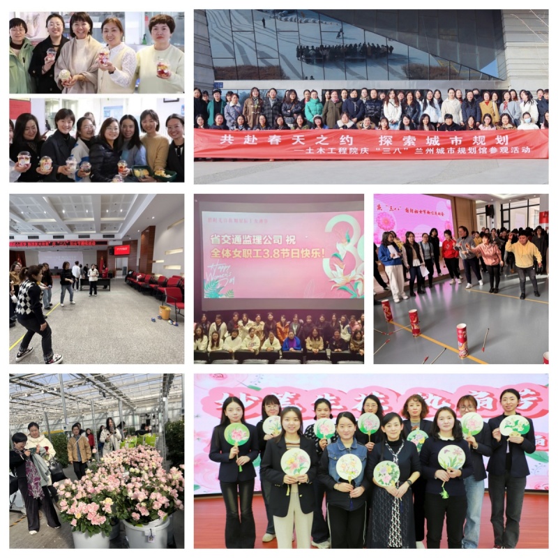 建筑設計院聯合省建設工會舉辦巾幗勞模宣講會和職工趣味運動會,弘揚勞模精神、勞動精神、工匠精神,展現了女職工自信自強、昂揚向上的精神風貌。水電設計院舉辦甜品烘焙、棋牌娛樂活動,讓幸福在動手中加“焙”,讓快樂在交流中傳遞。規(guī)劃設計院組織趣味運動會,女職工們激情飽滿、團結協(xié)作、配合默契,展現了齊心協(xié)力、友愛互助的奮發(fā)姿態(tài)。土木工程院開展蘭州城市規(guī)劃館參觀活動,讓女職工充分感受蘭州的歷史之美、時代之美、未來之美,積蓄建設新時代美麗甘肅的奮進力量。招標咨詢集團舉辦“妙筆生花,執(zhí)扇芳華”主題活動,女職工們扇面揮毫、絲線著色,創(chuàng)作了一幅幅匠心獨具的作品,彰顯藝術修養(yǎng)和審美意趣。交通監(jiān)理公司組織女職工觀看電影《第二十條》,增強大家知法學法懂法守法用法的意識。建設監(jiān)理公司組織女職工開展采摘踏青活動,參觀美麗鄉(xiāng)村,在田野中放飛夢想,增強團隊凝聚力。