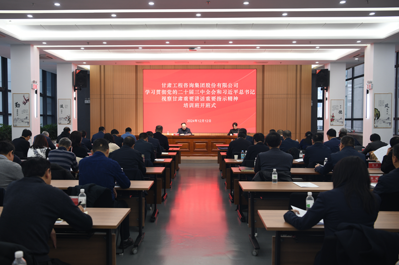 12月12日,甘肅工程咨詢(xún)集團(tuán)學(xué)習(xí)貫徹黨的二十屆三中全會(huì)和習(xí)近平總書(shū)記視察甘肅重要講話重要指示精神培訓(xùn)班開(kāi)班。集團(tuán)公司黨委副書(shū)記、總經(jīng)理張佩峰出席開(kāi)班式并講話,黨委副書(shū)記王春燕主持開(kāi)班式。