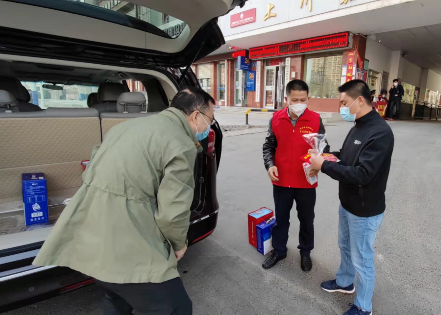 每到一個(gè)社區(qū)志愿服務(wù)點(diǎn),陳啟和都詳細(xì)詢問了志愿者工作開展情況及用餐保障情況,并為志愿者送上保溫杯、食品和水果。來到萊茵小鎮(zhèn)小區(qū)時(shí),正趕上上午全員核酸工作結(jié)束。一身“清涼”打扮的王賢亮,在捂得嚴(yán)嚴(yán)實(shí)實(shí)的人群中顯得格外亮眼。因?yàn)楣ぷ鲿r(shí)還要套上防護(hù)服,即使天氣冷,他也只能身著單衣。透過口罩,依然能感受到他陽光燦爛的笑容,和在工作崗位上做技術(shù)質(zhì)量服務(wù)、工會(huì)工作時(shí)一個(gè)樣兒。辦公室的曹陽在封控小區(qū)參與志愿服務(wù),承擔(dān)著核酸檢測(cè)、為封管居民配送生活必需品和數(shù)據(jù)統(tǒng)計(jì)上報(bào)等工作,每天一棟樓一棟樓的登記,挨家挨戶的排查,工作更繁雜也更辛苦。按照社區(qū)防控要求,雖然不能把慰問品親自交到她的手上,慰問組也通過電話送去了慰問和關(guān)懷,并一再叮囑她,要做好自我防護(hù)。