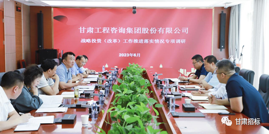 6月13日,甘肅工程咨詢集團(tuán)黨委委員、副總經(jīng)理劉立昱,董事會(huì)秘書(shū)柳雷,戰(zhàn)略投資部(改革辦)部長(zhǎng)馬靈會(huì)一行到招標(biāo)咨詢集團(tuán)對(duì)戰(zhàn)略投資(改革)工作推進(jìn)落實(shí)情況、董事會(huì)建設(shè)和運(yùn)行情況開(kāi)展專項(xiàng)調(diào)研。