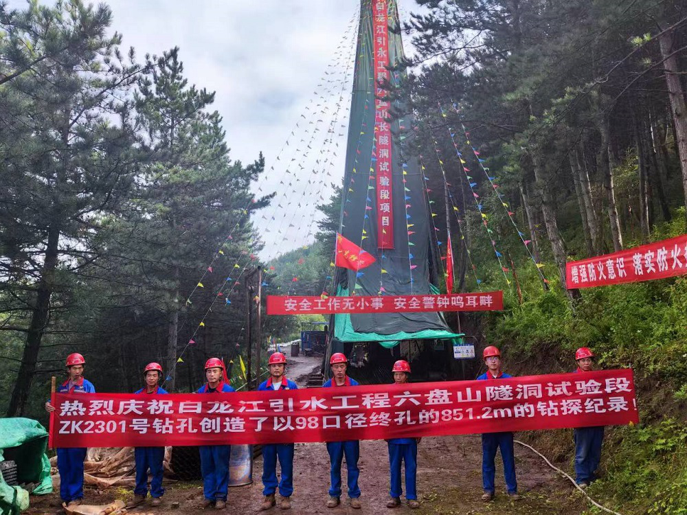 近日,省水電設(shè)計院勘探公司在白龍江引水工程六盤山長隧洞試驗段項目ZK2301鉆孔施工中,以98mm口徑順利完成851.2m鉆進任務(wù),刷新了水電設(shè)計院在該口徑終孔鉆探原575m后最深紀(jì)錄,極大地提振了干部職工的雄心壯志。