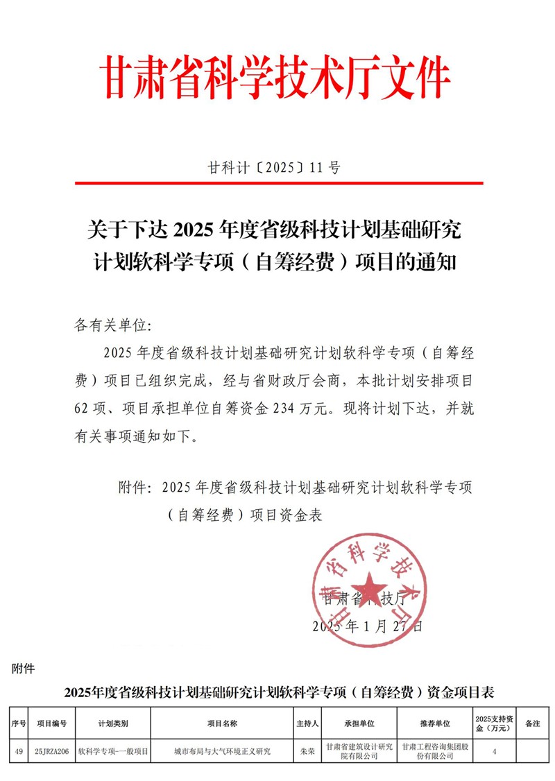 近日,甘肅省科技廳公布了2025年省級(jí)科技計(jì)劃基礎(chǔ)研究計(jì)劃軟科學(xué)專項(xiàng)(自籌經(jīng)費(fèi))項(xiàng)目立項(xiàng)結(jié)果,省建筑設(shè)計(jì)院申報(bào)的“城市布局與大氣環(huán)境正義研究”項(xiàng)目獲批立項(xiàng)。